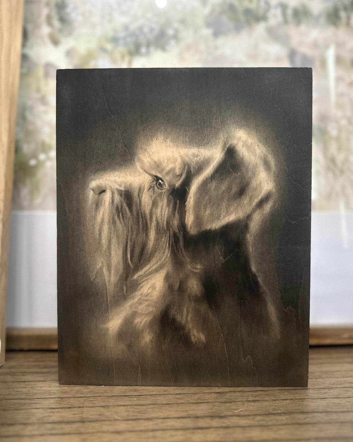 8 x 10 hand crafted original charcoal drawing on wood panel with acrylic resin finish